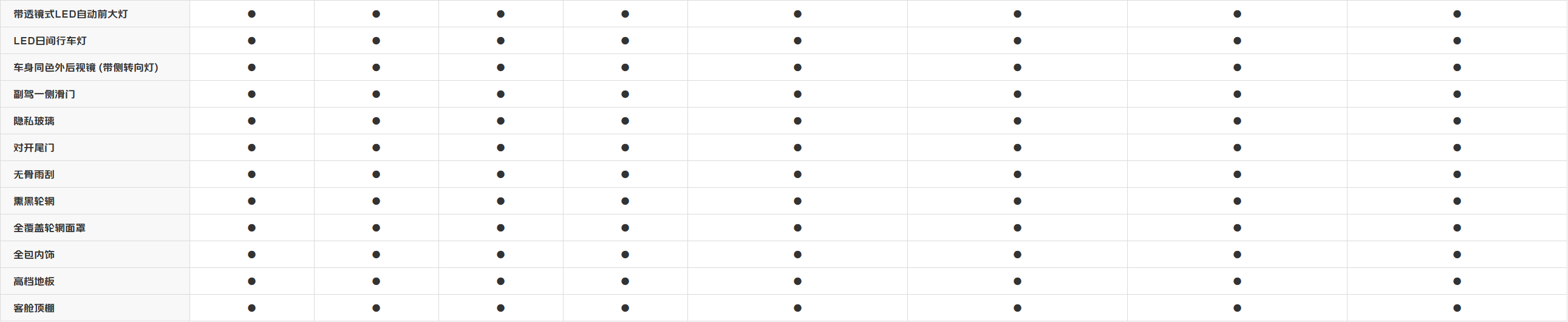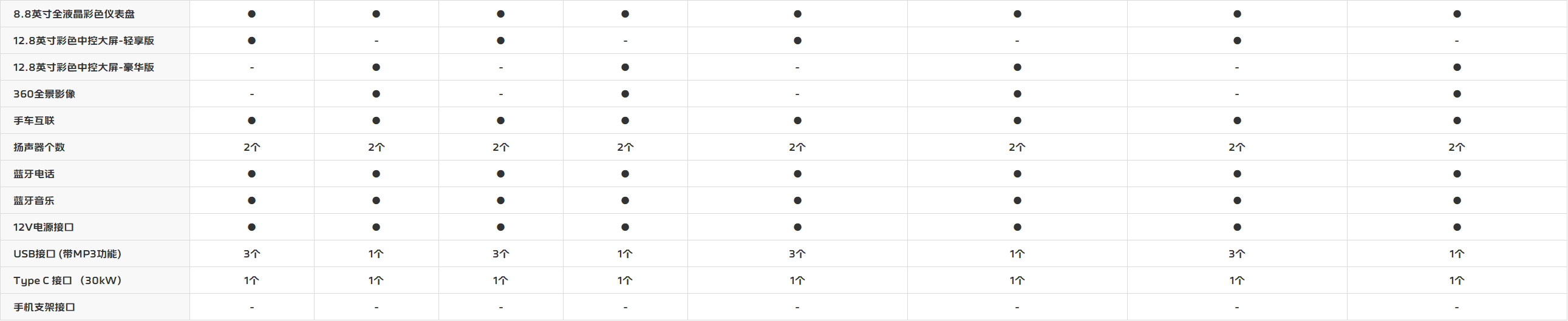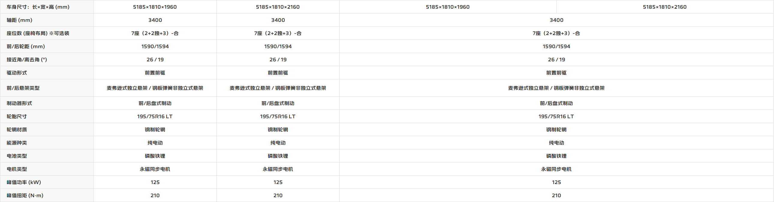 车型参数表