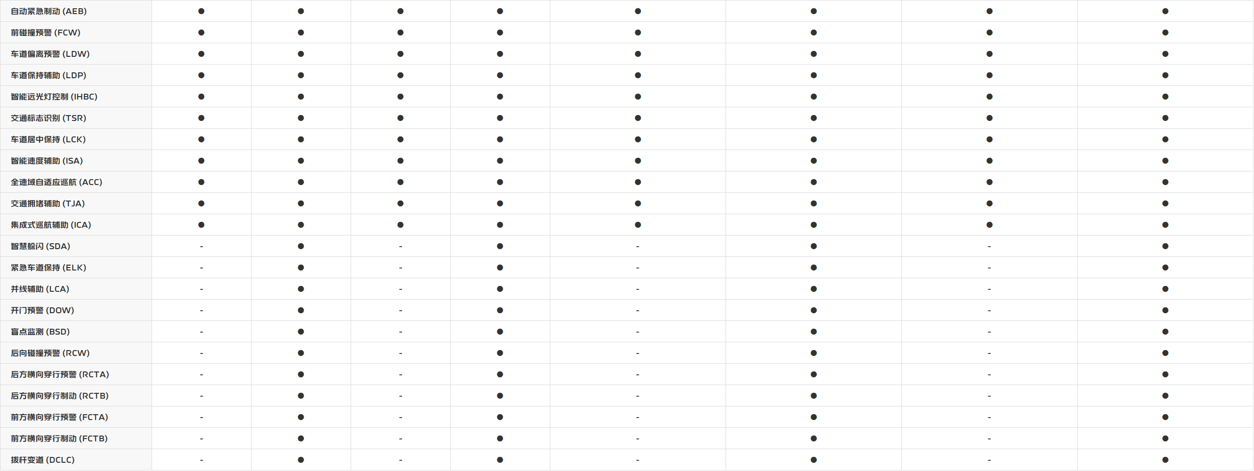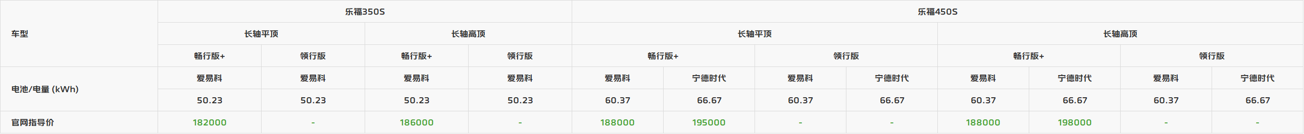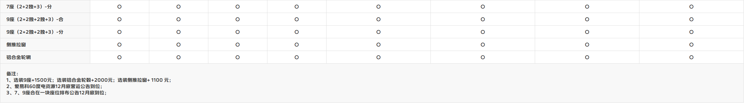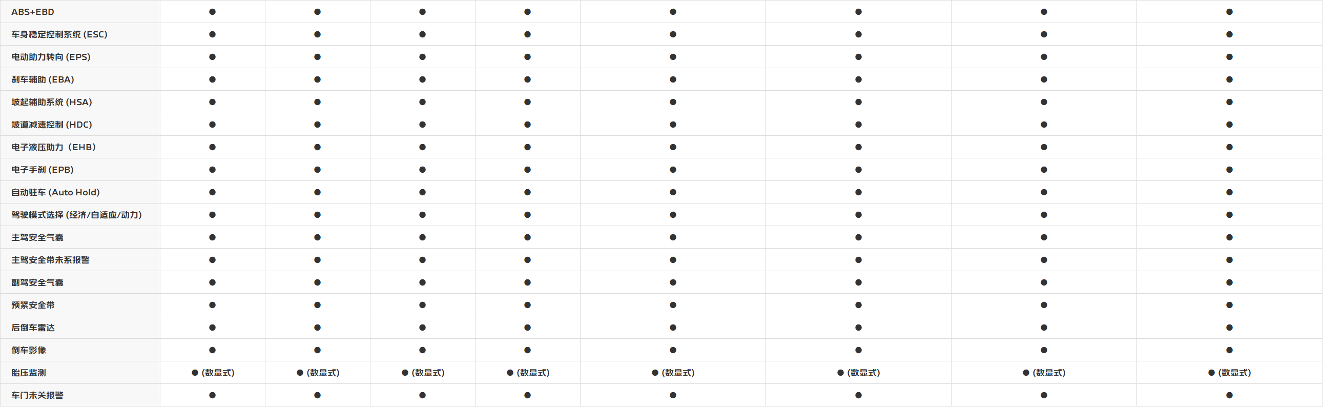 车型参数表